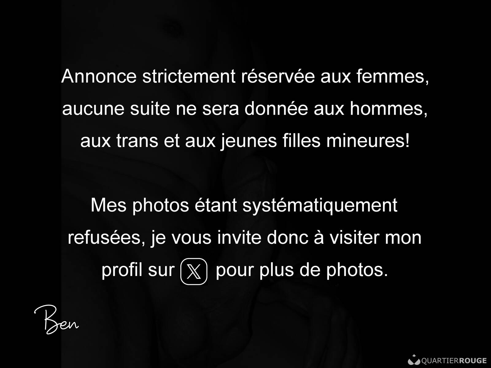 Je me réserve le droit de refuser une rencontre si votre physique ne me convient pas.