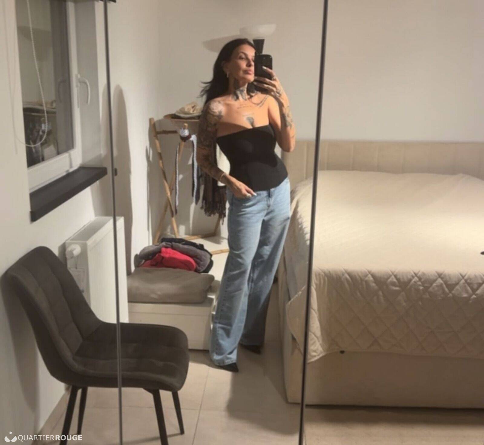 Bonjour, je suis une brune tatouée qui adore faire l'amour, je suis une femme douce, polie et douce, j'aime les préliminaires, les baisers sur la bouche, l'affection et les attouchements, j'ai une hygiène impeccable, prends rendez-vous avec moi et venez et soyez heureux, je vous garantis que vous ne serez pas déçu, je travaille dans un appartement privé super discret et propre, ici vous vous sentirez à l'aise et vous pourrez également prendre une douche dans ma belle salle de bain.