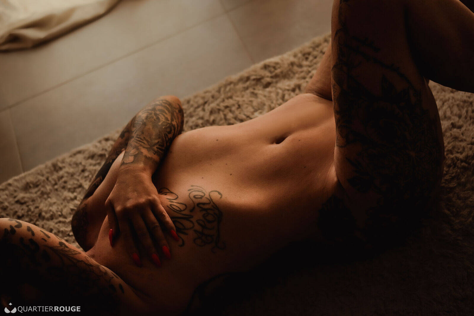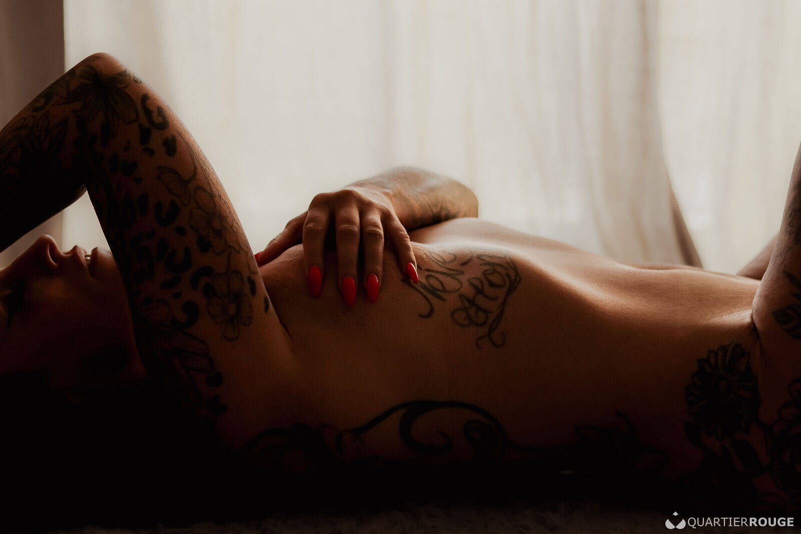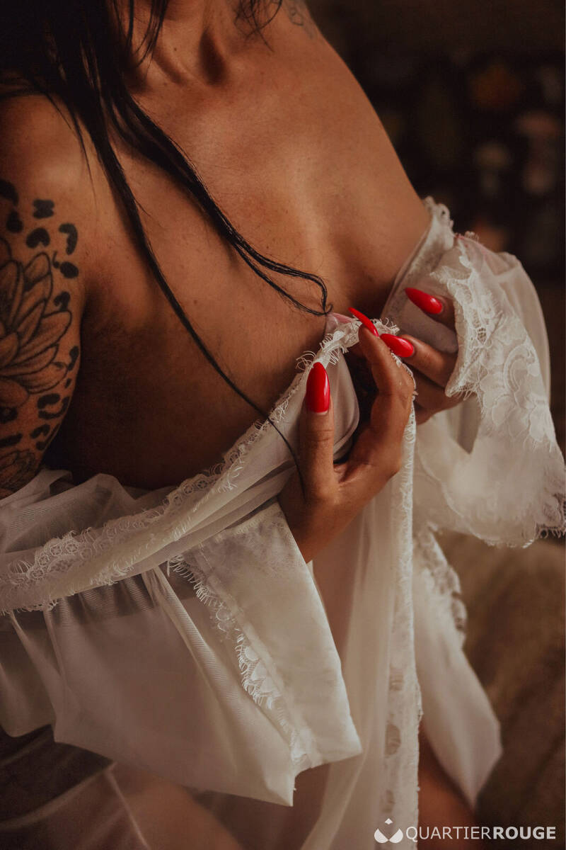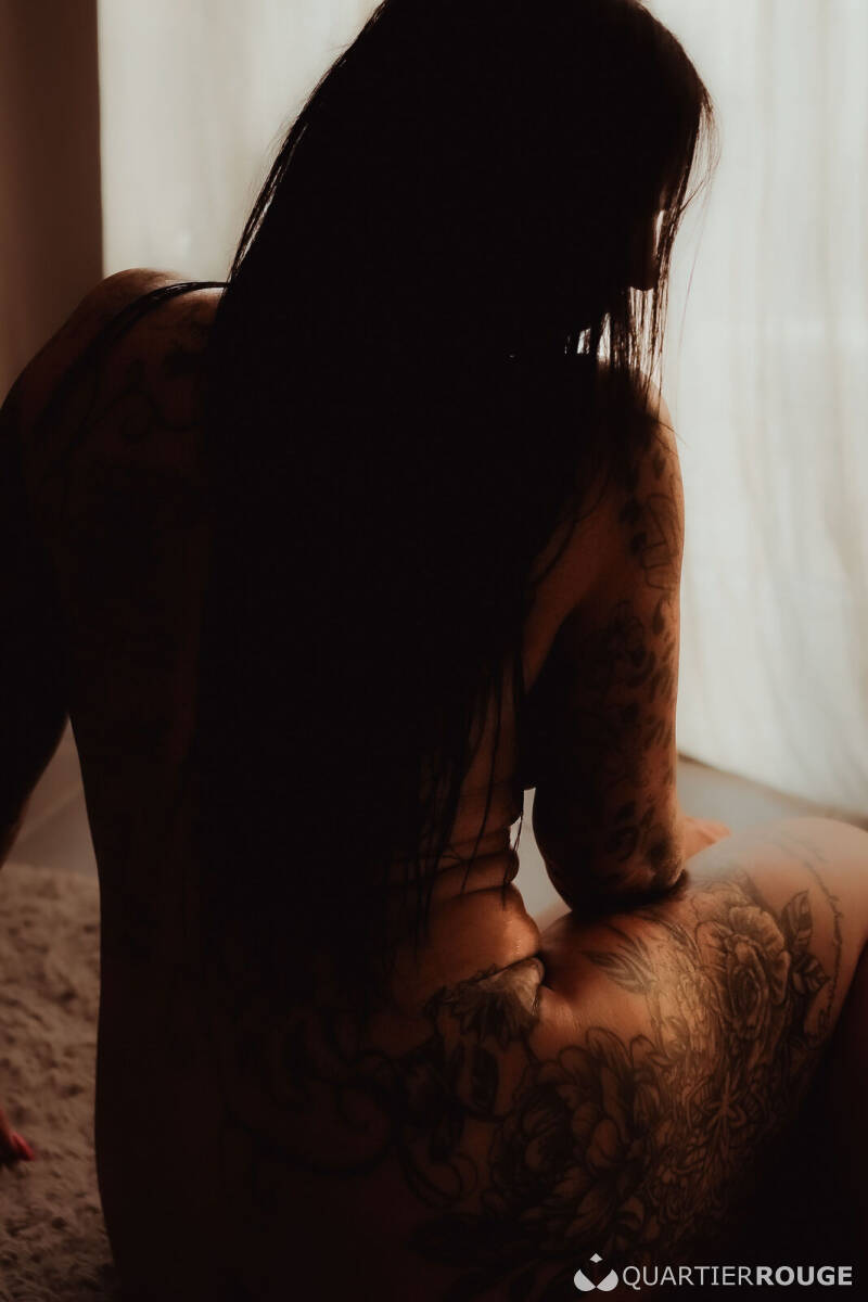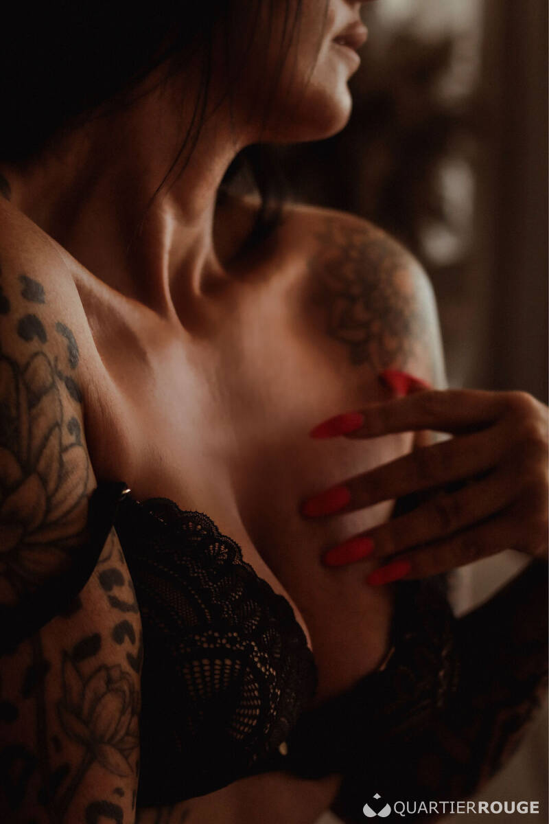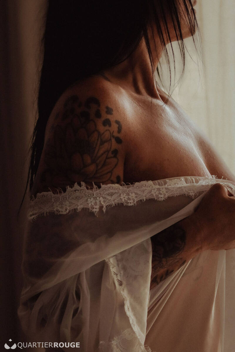 Gardienne de secrets tantriques, Livia vous invite à un voyage sensoriel où chaque souffle, chaque geste, réveille des sensations oubliées. Dans la pénombre douce, son regard noisette capte le vôtre. Sa chevelure d’ébène, son bronzage chaleureux et ses tatouages fascinants intriguent et fascinent, mais ce n’est qu’un prélude…